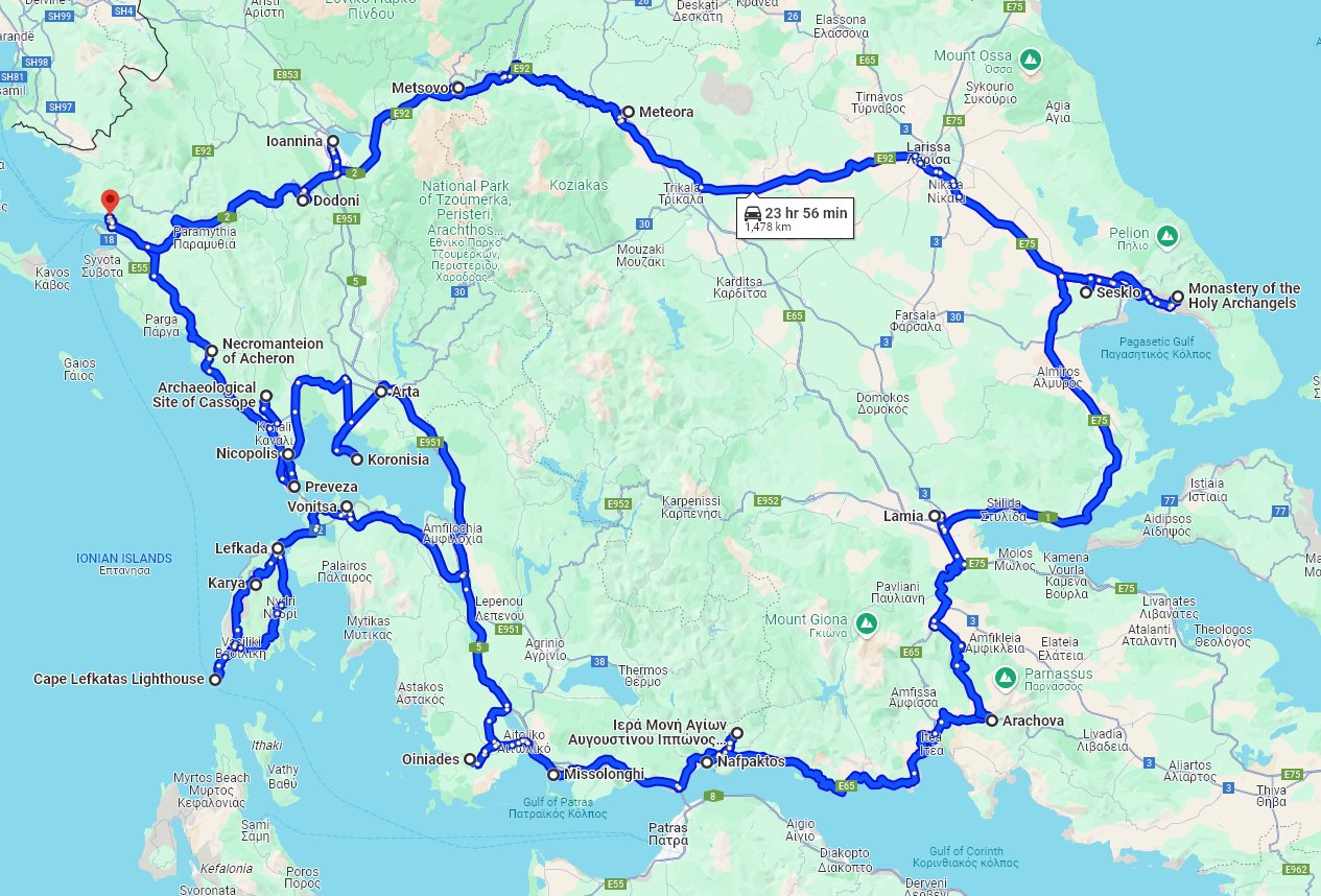 Tour summaryCentral Greece 14 days circle tour to less touristy attractions from Igoumenitsa. Private tour in minivan by Monterrasol Travel. Off-season explore lesser-known locations. This page describes details of the multi-day private car tour #411 offered by Monterrasol Travel. We, Monterrasol Travel, are an independent tour operator specialized in cultural and destination tourism. This sightseeing tour has been developed by Monterrasol Travel for private travelers based on our own experiences and belongs to the group of car tours with pre-designed itineraries. If you like this tour but you would like to change something, please do not hesitate to contact us and mention the ID number of this tour: #411. The custom itinerary will cost you nothing, it's free from our side. The tour will start and finish in Igoumenitsa (Greece) and will take 14 days (13 nights). During this tour you will visit Necromanteion of Acheron, Kassope, Preveza, Nicopolis, Koronisia, Arta, Vonitsa, Lefkada, Oiniadai, Mesolongi, Nafpaktos, Galaxidi, Arachova, Thermopylae, Lamia, Sesklo, Dimini, Volos, Larissa, Trikala, Kalampaka, Meteora, Metsovo, Ioannina, Dodoni located in Greece. Overall, with this tour you will visit 1 UNESCO World Heritage site and 4 sites from the UNESCO Tentative List (sites that were submitted to the World Heritage Committee, and are awaiting to consider for nomination, and therefore suitable for inscription on the World Heritage List). Additional informationWe will pick you up at any hotel or place, in or around Igoumenitsa. Drop off is the same as pick up, or upon request in another place. We, at Monterrasol Travel, practice the Slow Tourism philosophy. That means that we work our tours at a pace that allows to our clients have a more authentic experience and a true exploring of each destination that features in our itineraries. The default tour price includes rooms in 3-star hotels, which are usually not near historical centers with pedestrian streets. If you would like better accommodation in terms of location and quality level, please contact us. This tour can be booked by solo traveler as exclusive solo tour (the tour will be for you only, without other travelers in the vehicle). The price for 1 person reflects it. We provide for this tour a special discount for pensioners (seniors citizens). We recommend you consider traveling off-season. Advantages of traveling off-season. Photo galleryPhoto gallery of attractions involved in this tour. Tour descriptionWe welcome you to travel with us across Central Greece to explore lesser-known locations with our 14-day off-season circle tour from Igoumenitsa. Traveling to lesser-known locations offers the unique benefit of authentic and immersive cultural experiences. Unlike popular tourist spots often saturated with visitors, these destinations allow for meaningful interactions with locals who are genuinely welcoming and willing to share their traditions, customs, and lifestyles. We will start with visiting the Necromanteion of Acheron (oracle of the dead), an unusual site with an ancient Greek temple of necromancy devoted to Hades and Persephone. After Necromanteion, we will see the archaeological site Cassope, a magnificent and remote site on a high platform overlooking the sea. We will spend 2 nights in coastal town Preveza, because we need to explore nearby located large archaeological site Nicopolis, the capital city of the Roman province Epirus. After Preveza, on the way to Arta, we will see a small small fishing village Koronisia. In Arta, we will walk over the impressive four-arched stone bridge known from Roman times and visit the archaeological museum. After Arta, we will take road to Lefkada, and on the way visit coastal town Vonitsa, with its impressive fortress and beautiful promenade crossed the sea to small islet. In Lefkada we also will stay 2 nights, because on the next day we will take a trip around whole island, will see its style of life, villages and beaches, and will come to the Cape Lefkatas, the very last point of the island. After a second night in Lefkada, we will see Faneromeni monastery, located high above Lefkada between pine trees and admire panoramic view. Later, we will take a road around Lefkada lagoon, to admire beautiful surrounding. Before arrive to Nafpaktos, we also will see the archaeological site Oeniadae, ancient Greek city known for its well-preserved shipyard, and Messolonghi lagoon. In Nafpaktos, we will come to see the Nafpaktos fortress, and after will take a small trip inland to see two remote and less known monasteries: woman monastery Saints Nektarios & Fanourios, and man monastery of Saints Augustine & Seraphim Sarov. After visit monasteries, we will return back to Nafpaktos to see the small port witness of several battles, and say hello to Miguel de Cervantes. On the next day we will come to mountain town Arachova, a famous winter destination, to explore its attractions. On the way to Arachova we will stop in cute coastal town Galaxidi. We will continue our tour with visiting Thermopylae infocenter and see the monument of legendary King Leonidas, will come to see hilly fortress in town Lamia, and walk two small archaeological sites Sesklo and Dimini, two of the main sites of the Greek Neolithic Period, ca. 6000-3000 BCE. We will stay again 2 night in coastal town Volos, where we also will visit its archaeological museum, to see artifacts from Sesklo and Dimini. Near Volos is located mountain monastery of Holy Archangels which we will see also on the same day. Leaving Volos, we will come to town Larissa, to see its modern archaeological museum and its well-preserved ancient theater (UNESCO Tentative List site). From Larissa, on the way to Kalampaka, we will stop in the town Trikala, to see its fortress. From Kalampaka we will reach several several Meteora monasteries (UNESCO World Heritage site). After Meteora monasteries, we will come to see the mountain town Metsovo, famous for its wine and ch