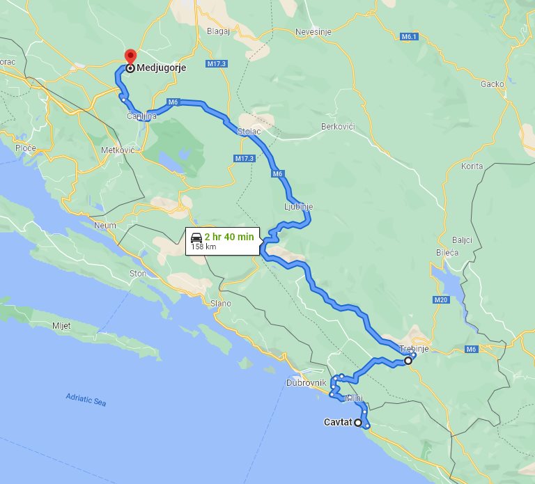 Here on this page we provide the price and details for long distance transfer from well known Cavtat, located in Croatia, to the popular destination, Medjugorje (Međugorje), located in Bosnia and Herzegovina.